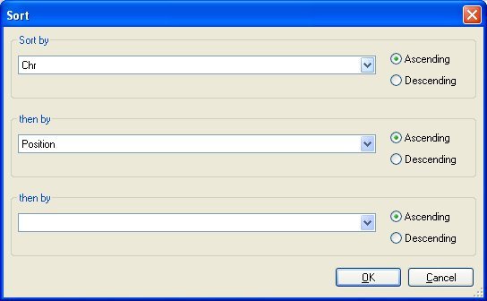 Then click “OK” to close the column chooser and click the “Sort by multiple columns” button. Select “Chr” as the first field and “Position” as the second field.
